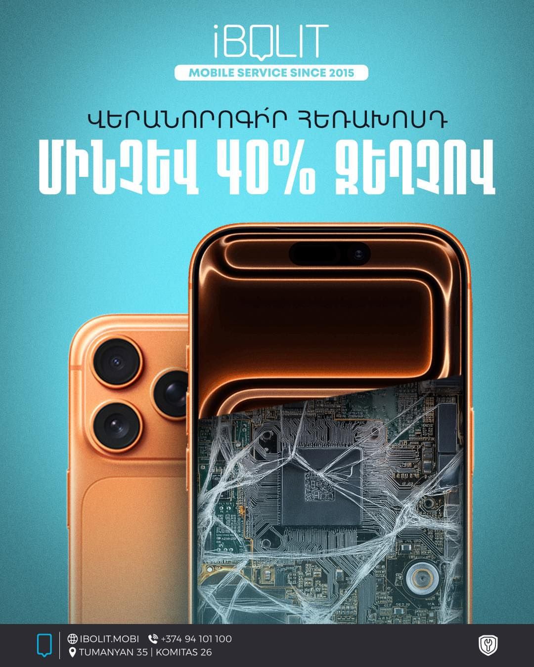 Իսկ մինչև ապրիլի 7-ը կարող ես նորոգել հեռախոսդ մինչև 40% զեղչով 💥